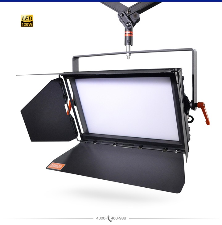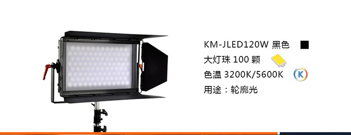 LED影視平板燈KM-JLED120W由600顆進(jìn)口LED燈珠組合而成,發(fā)光效率高,可形成大面積發(fā)光矩陣,顯色指數(shù)高,色還原好,配有高透光率亞克力柔光板,光輸出柔和、均勻,無有害紅外線,紫外線,無眩光,無閃爍,不刺眼。自然散熱,環(huán)保節(jié)能,超長壽命5萬小時(每天使用10小時,可以用13年),運(yùn)行費(fèi)用低,比傳統(tǒng)的三基色冷光燈節(jié)能50%,節(jié)約線材等優(yōu)點(diǎn)。