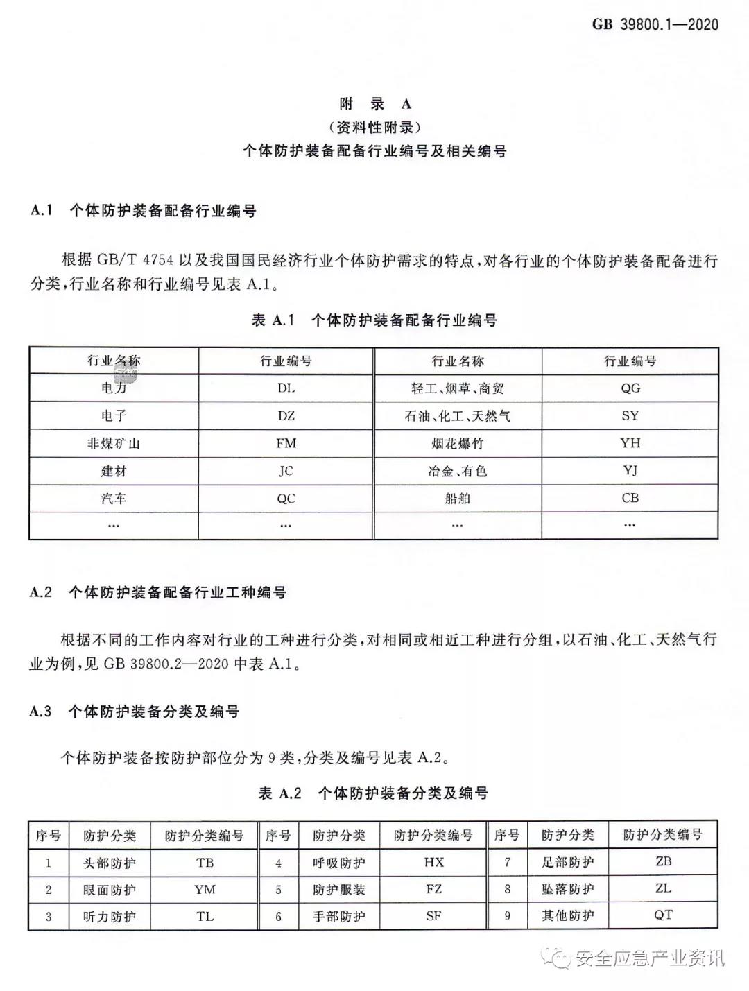 增加了所在行業(yè)個(gè)體防護(hù)裝備配備國(guó)家標(biāo)準(zhǔn)行業(yè)編碼;