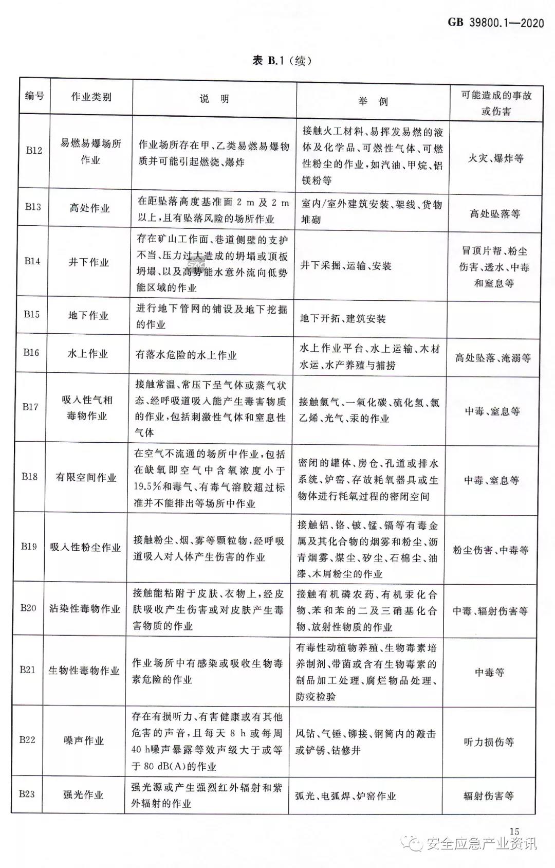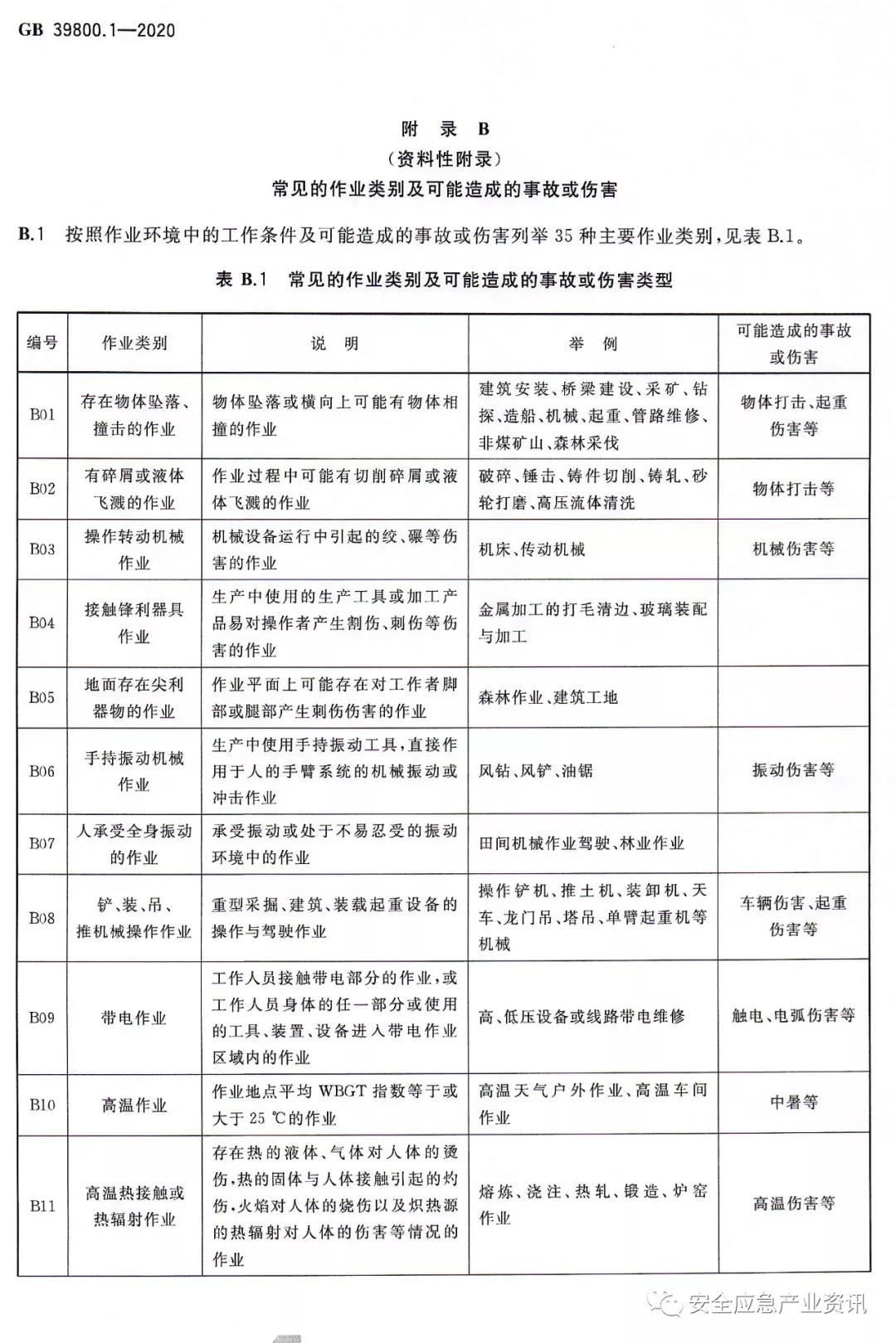 更改了常見(jiàn)的作業(yè)類別及可能造成的事故類型;