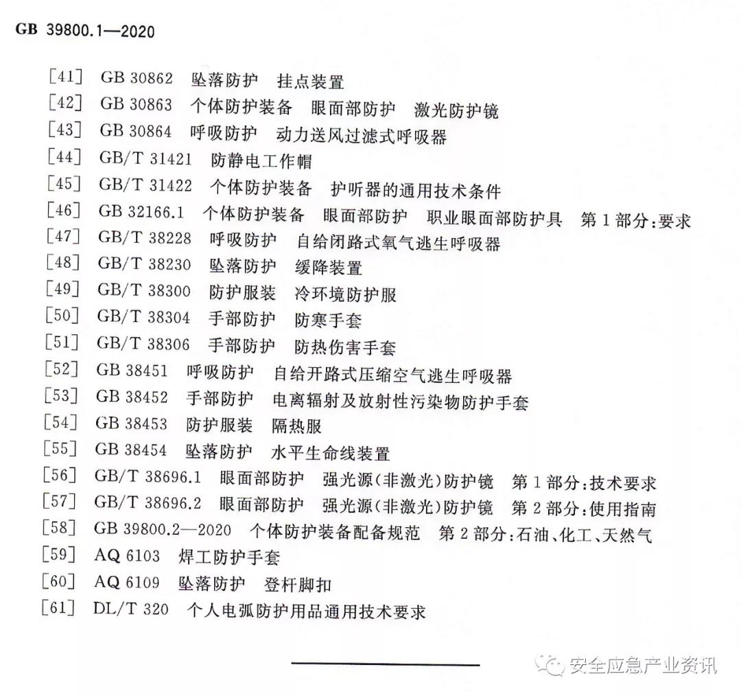 官方消息:GB39800.1-2020《個(gè)體防護(hù)裝備配備規(guī)范第1部分:總則》將代替GB/T11651-2008《個(gè)體防護(hù)裝備選用規(guī)范》、GB/T29510-2013《個(gè)體防護(hù)裝備配備基本要求》,并將于2022年1月1日實(shí)施。GB39800.2-2020《個(gè)體防護(hù)裝備配備規(guī)范第2部分:石油、化工、天然氣》、GB39800.3-2020《個(gè)體防護(hù)裝備配備規(guī)范第3部分:冶金、有色》、GB39800.4-2020《個(gè)體防護(hù)裝備配備規(guī)范第4部分:非煤礦山》也將于2022年1月1日實(shí)施。