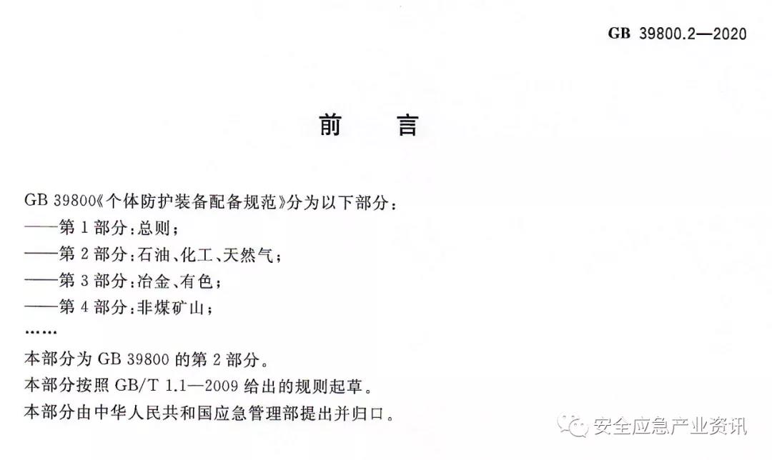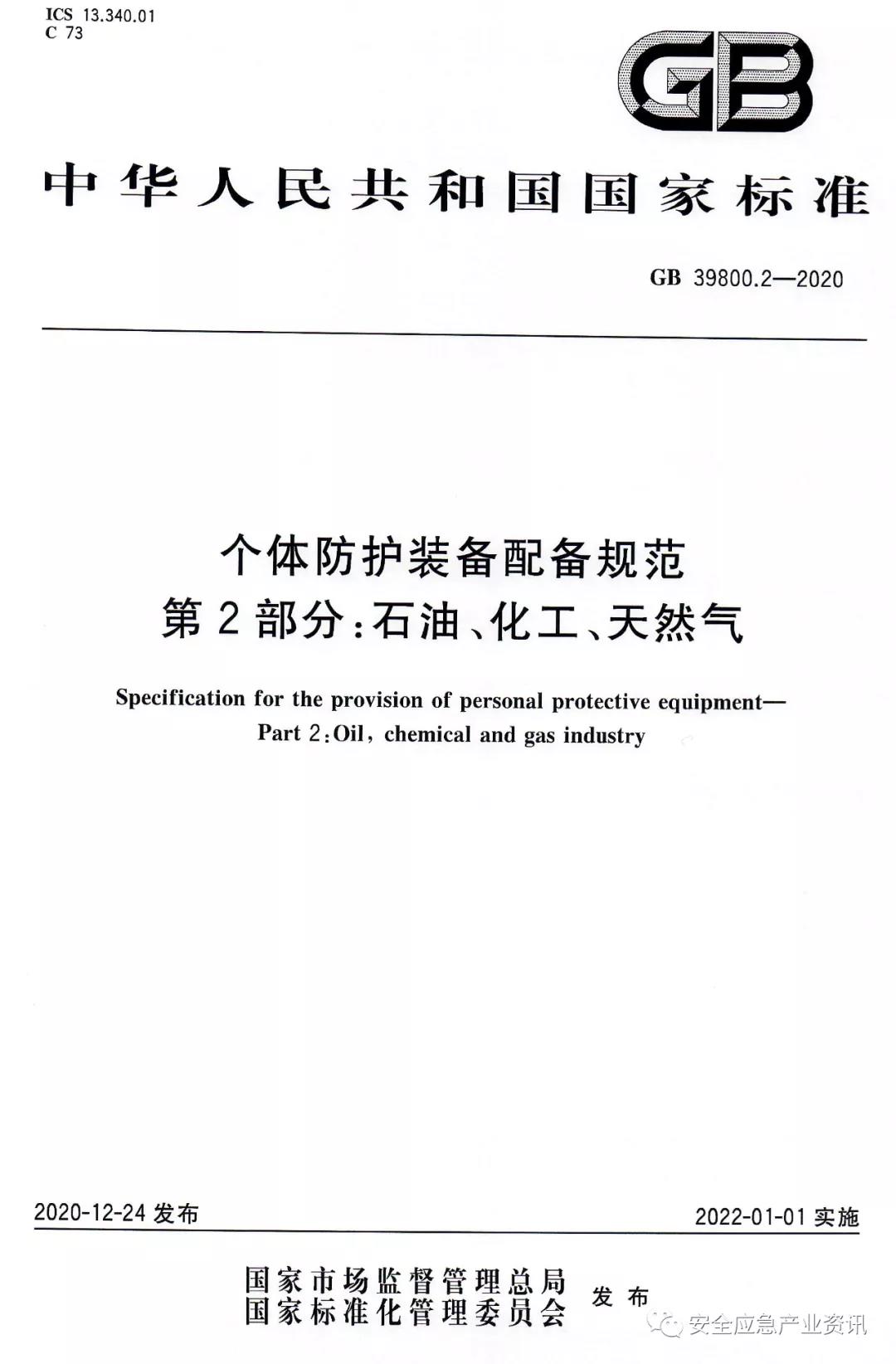 GB39800.2-2020《個(gè)體防護(hù)裝備配備規(guī)范第2部分:石油、化工、天然氣》規(guī)定了石油、化工、天然氣行業(yè)用人單位個(gè)體防護(hù)裝備(即勞動(dòng)防護(hù)用品)配備的總體要求、危害因素的辨識(shí)和評(píng)估及個(gè)體防護(hù)裝備的配備。