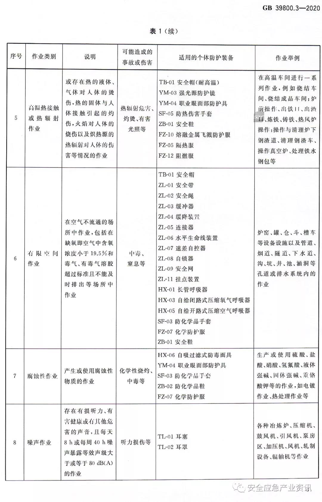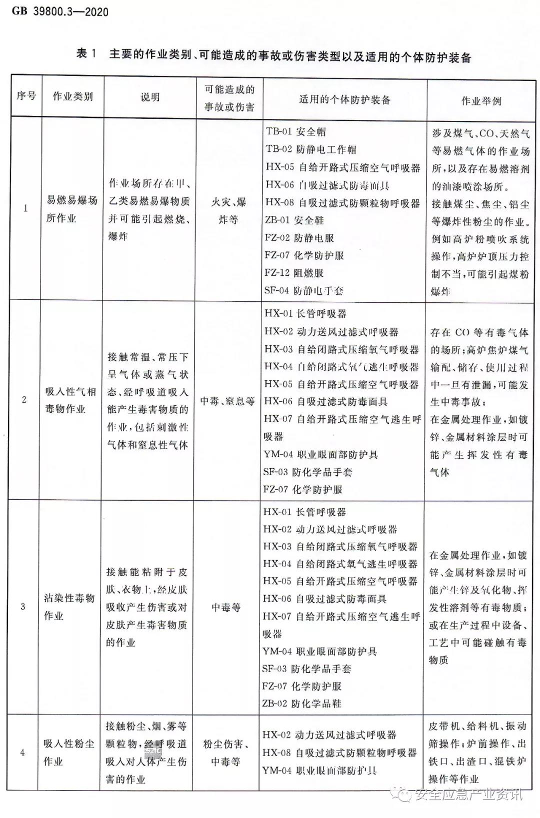 用人單位應(yīng)結(jié)合冶金、有色行業(yè)安全生產(chǎn)的特點(diǎn),按照GB39800.1-2020《個(gè)體防護(hù)裝備配備規(guī)范第1部分:總則》(>>>詳情)中4.2的要求對(duì)其生產(chǎn)過(guò)程中可能涉及的危害因素進(jìn)行辨識(shí)和危害評(píng)估。用人單位可根據(jù)表1所列的作業(yè)類別,或參考附錄A所列的工種進(jìn)行危害因素的辨識(shí),并對(duì)所辨識(shí)的危害因素進(jìn)行危害評(píng)估,以此作為選擇適用個(gè)體防護(hù)裝備的依據(jù)。
