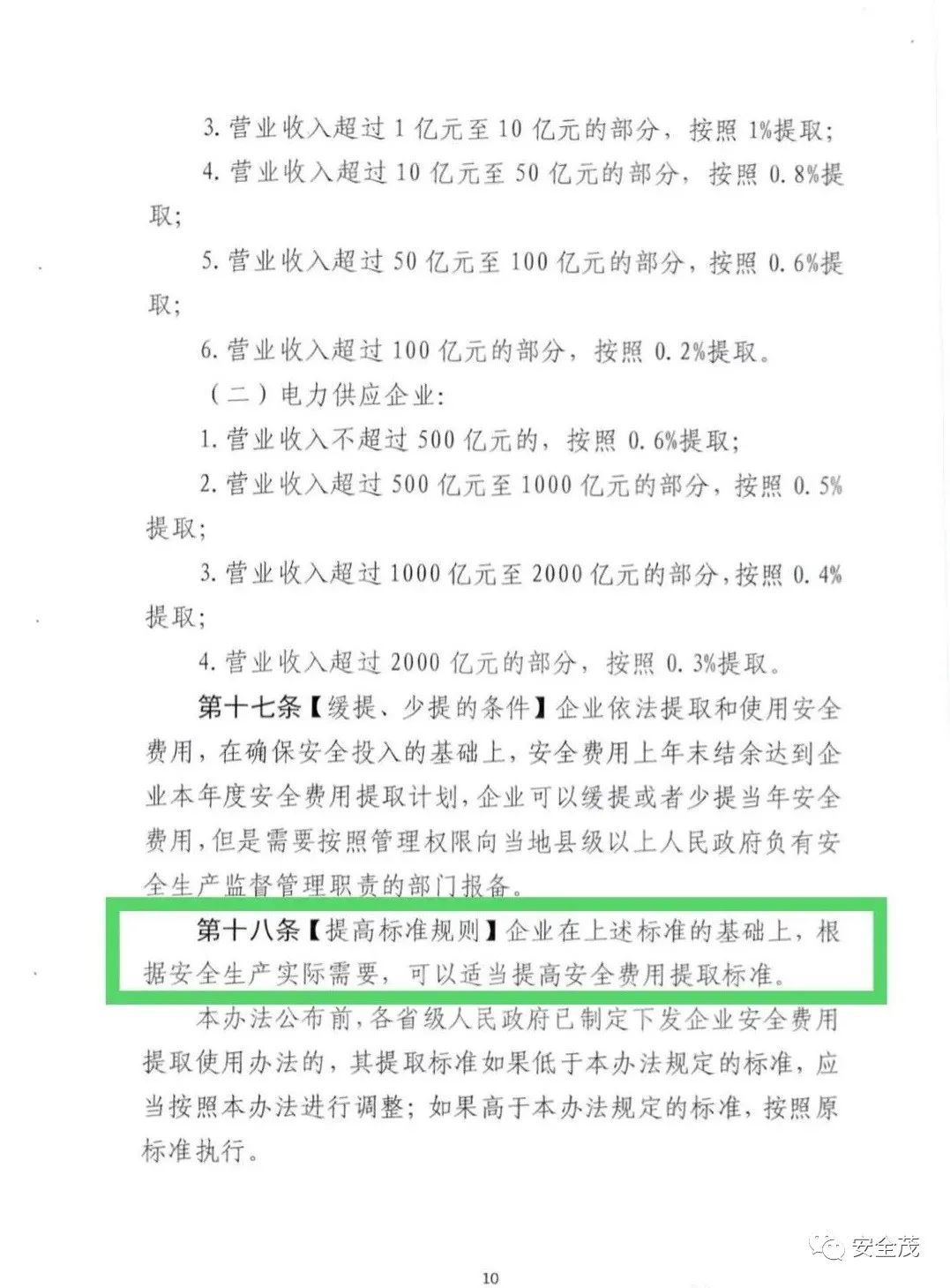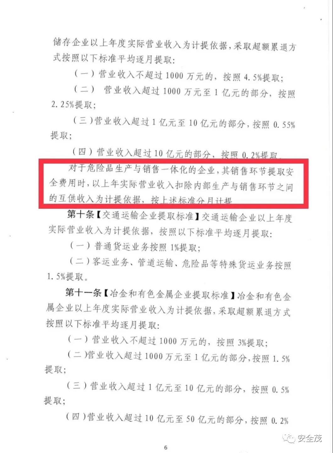 第十六條【特別計提依據(jù)】新建企業(yè)和投產(chǎn)不足一年的企業(yè),以當(dāng)年實際營業(yè)收入為提取依據(jù),按月計提安全費用。