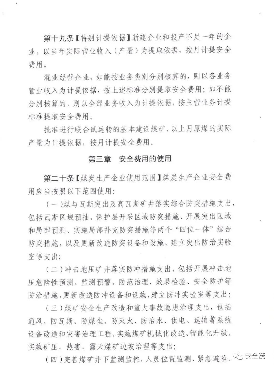 第二十六條【安全費用使用的優(yōu)先條款】在本辦法規(guī)定的使用范圍內(nèi),企業(yè)應(yīng)當(dāng)將安全費用優(yōu)先用于滿足應(yīng)急管理部門、煤礦安全監(jiān)察機構(gòu)以及行業(yè)主管部門對企業(yè)安全生產(chǎn)提出的整改措施或者達到安全生產(chǎn)標準所需的支出。