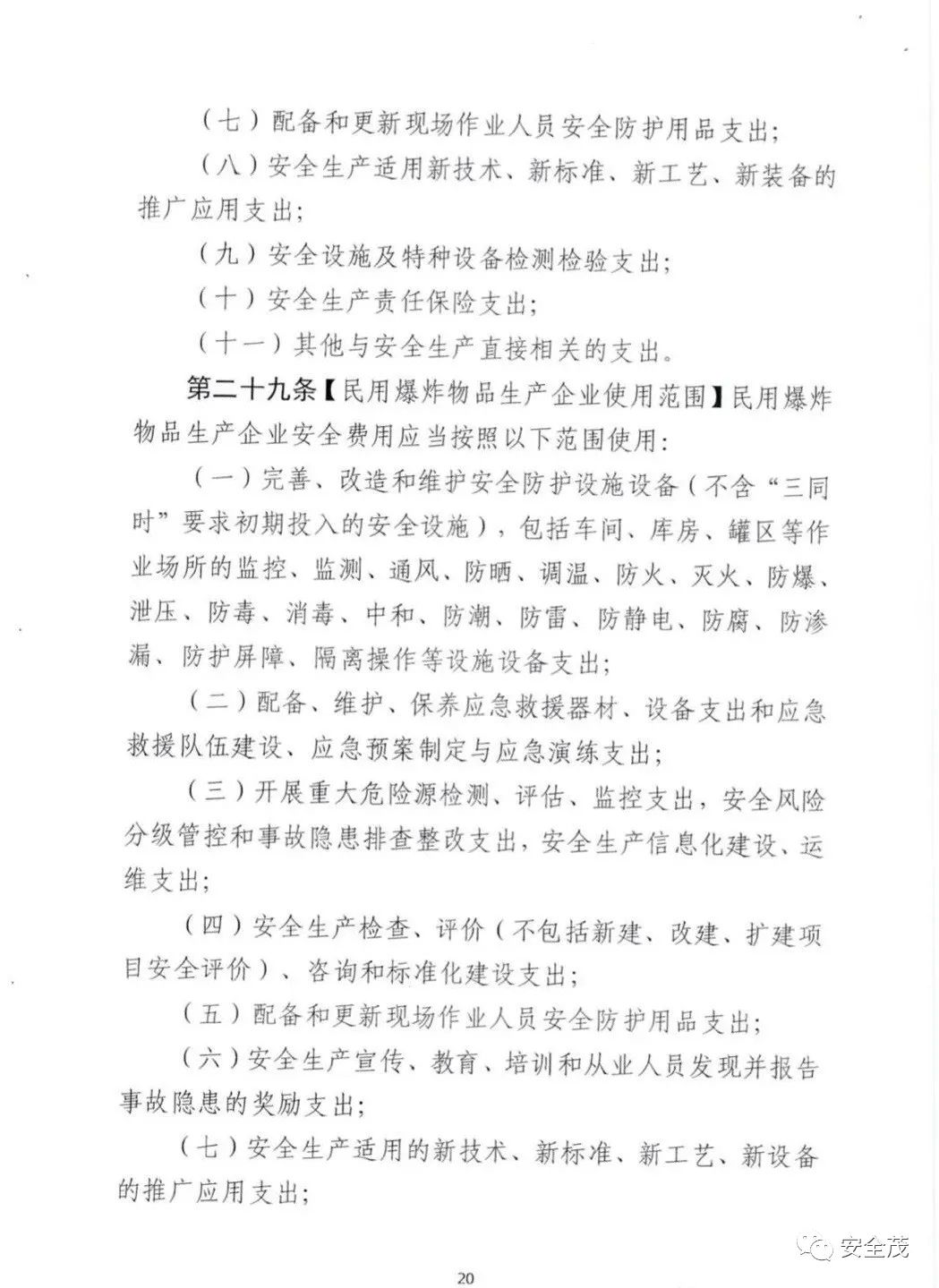 第二十五條【民用爆炸物品生產(chǎn)企業(yè)使用范圍】民用爆炸物品生產(chǎn)企業(yè)安全費用應(yīng)當(dāng)按照以下范圍使用: