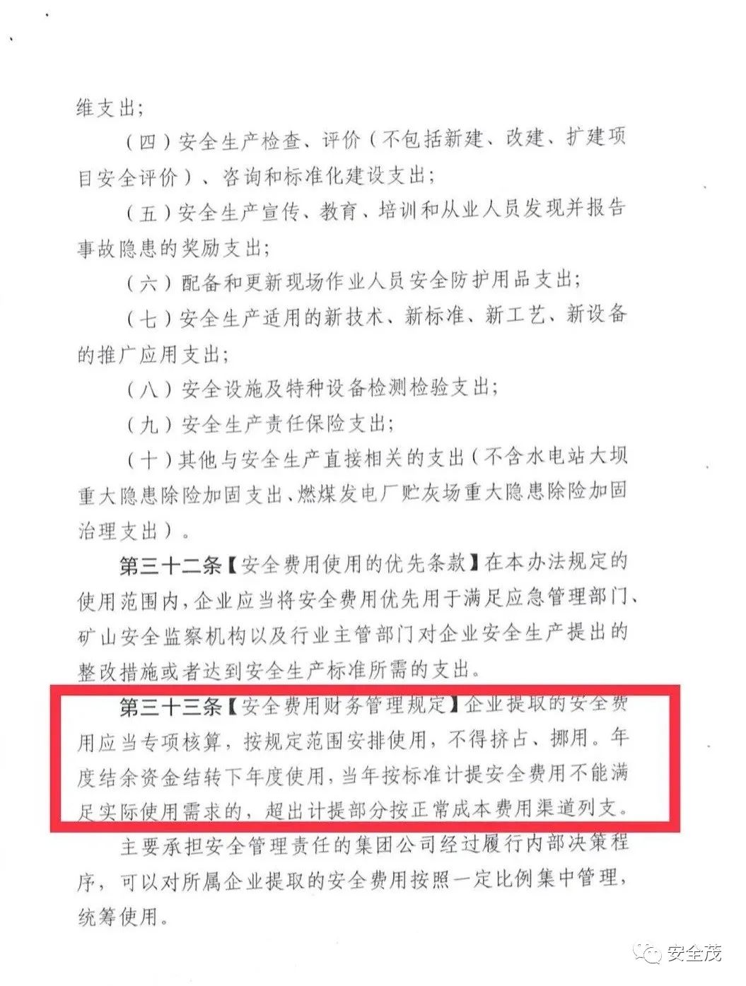 第三十二條【計劃管理】企業(yè)應(yīng)當(dāng)加強安全費用管理,編制年度安全費用提取和使用計劃,納入企業(yè)財務(wù)預(yù)算。